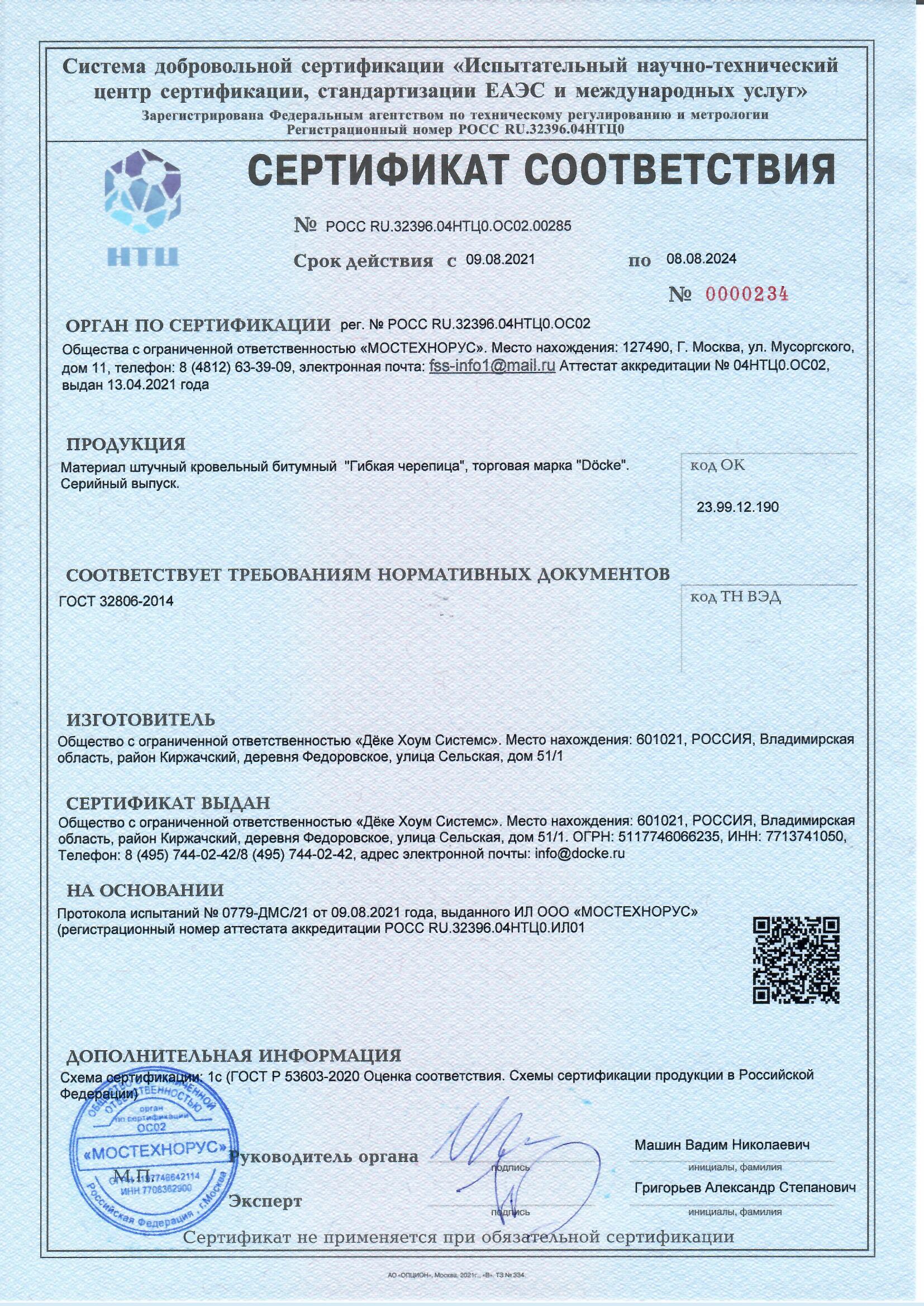Прочность на разрыв, устойчивость к УФ-излучению и гибкость битумного основания соответствуют ГОСТ 32806–2014. Гарантия на гибкую черепицу серии Premium составляет 50 лет (Standard — 30, Europa — 20)