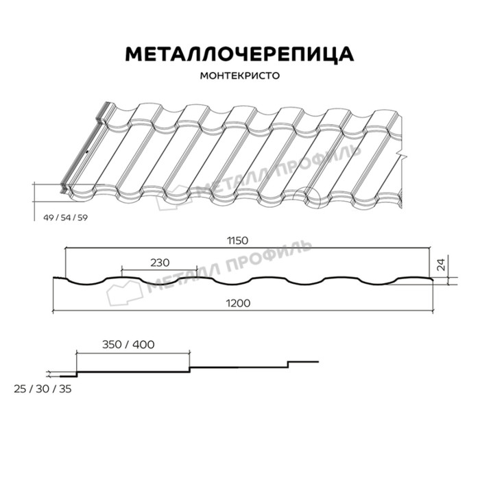 Металлочерепица Металл-Профиль Монтекристо-M 0,5 NormanMP RAL 3005 Красное вино Показать информацию