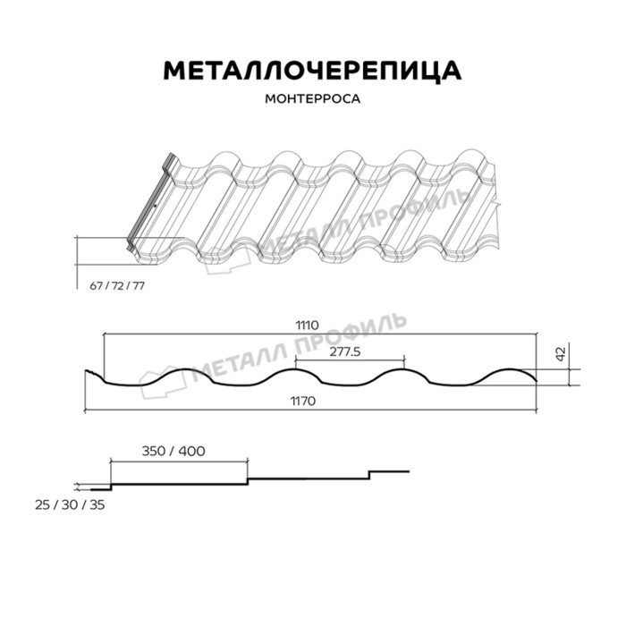 Металлочерепица Металл-Профиль Монтерроса-X 0,45 VikingMP® RAL 9005 Черный темный Показать информацию