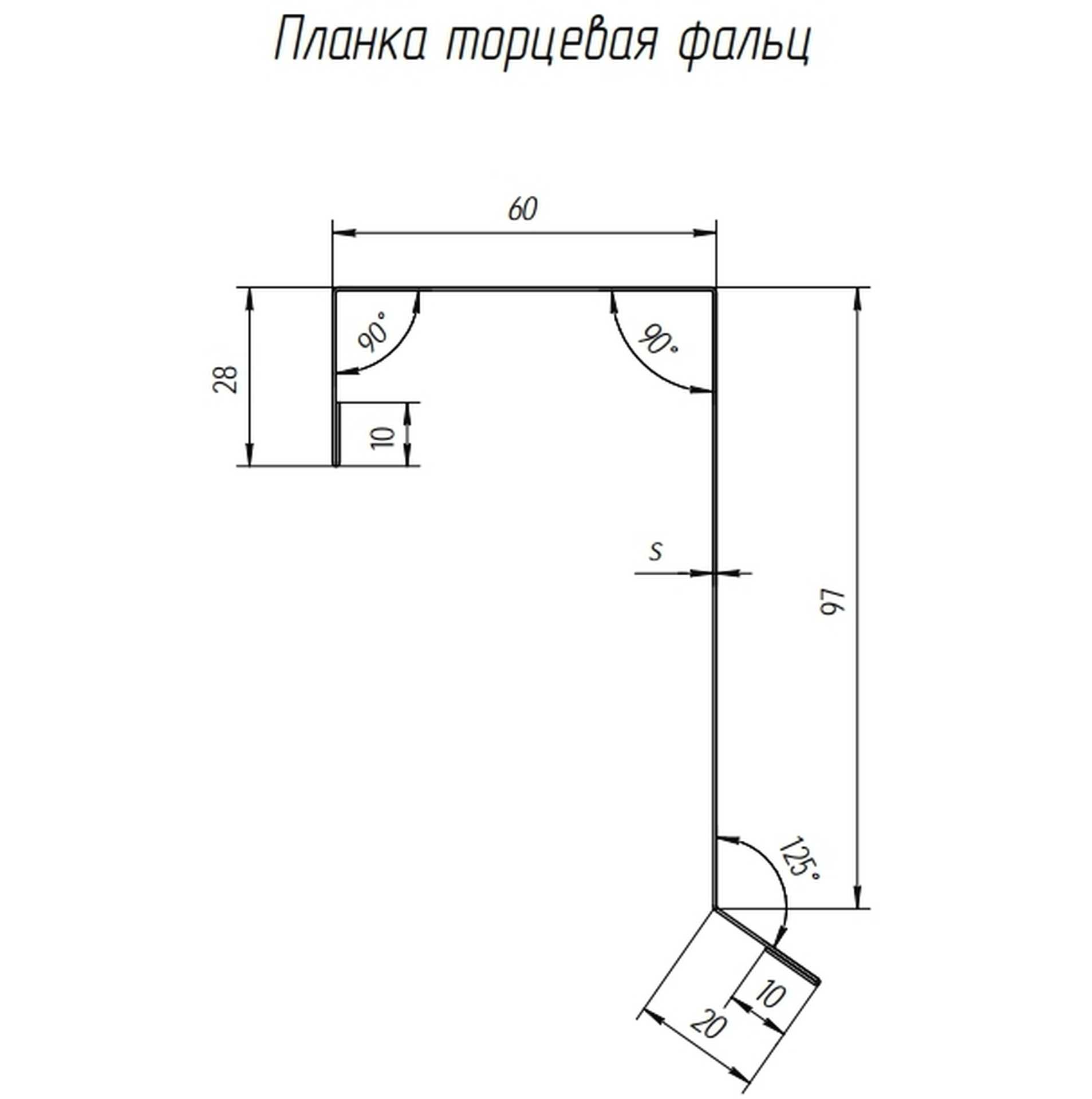 Планка торцевая фальц 60х97 0,45 Drap RAL 3005 красное вино