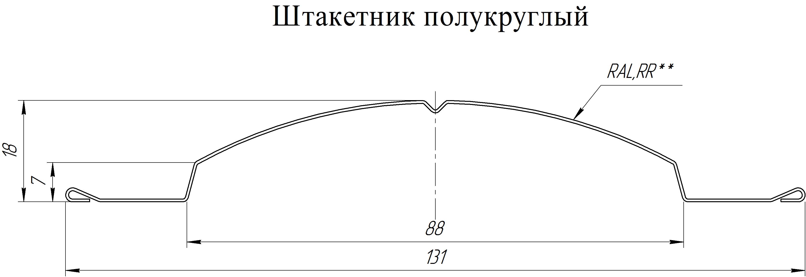 Штакетник Полукруглый Slim Grand Line 0,45 Drap RAL 8004 Терракота